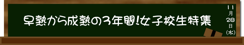 まだまだ幼さが残る1年生からエロオーラ満開の3年生まで…女の子にとっても我々野郎諸君にとっても貴重な黄金期、それが女子校生時代!!さぁ、3年間のサンクチュアリを見るがいい!!
