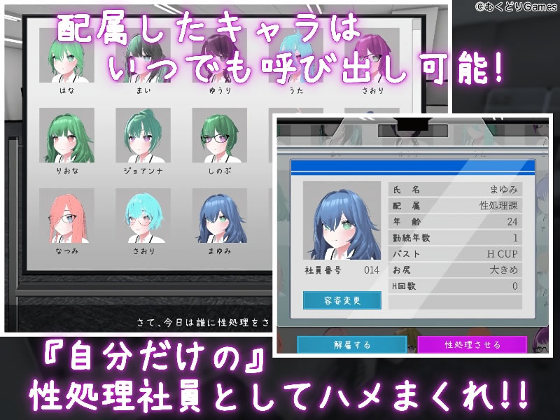 お気に入りをたくさん配属させて自分だけの性処理課を作ろう!