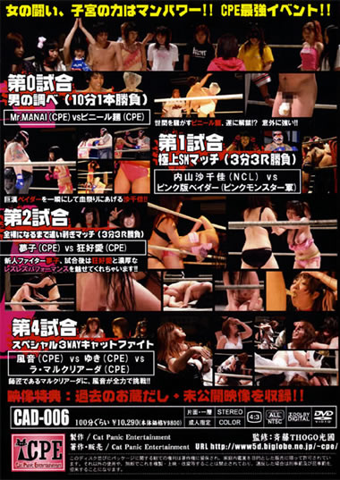 未だかつてない「衝撃」の女の闘い!!超満員、大盛況の2006年6月17日(土)東京新木場1stリングにて行われたCPEキャットファイトイベント本編&お蔵だし・未公開映像を収録!!!