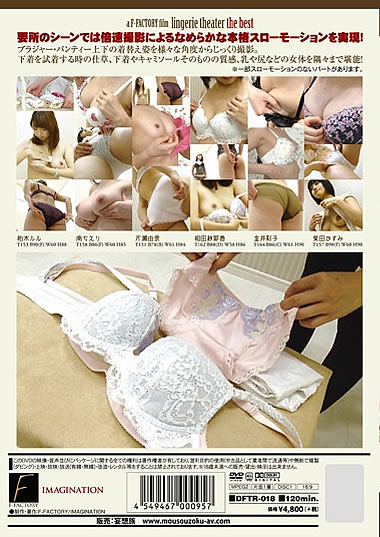 女性が下着を着用する姿をじっくりと、様々な角度から撮影。また、要所のシーンでは倍速撮影による本格スローモーション映像で隅々まで堪能。下着を愛するすべての人たちへ、選りすぐりの傑作選!