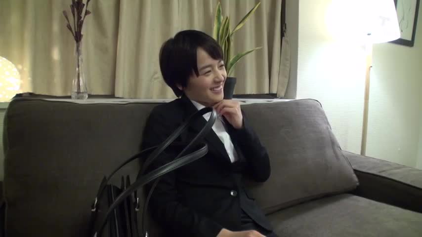 女子大生・藍さん。リクスー越しに胸を揉めばビクビクしながら吐息をもらし、ショーツ越しにクリを撫でるとそれだけで絶頂する敏感っぷり。直にクリをいじれば潮を吹き飛ばして昇天します。騎乗位では自ら桃尻をピストンして挿入感をたっぷり味わい、立ちバックで責めたてると脚をガクガクさせて昇天。精液は口で受けとめお掃除フェラ。社内でオナらせたあとしゃぶらせて疲れマラを癒してもらい口内射精した後、拘束して電マ責め。