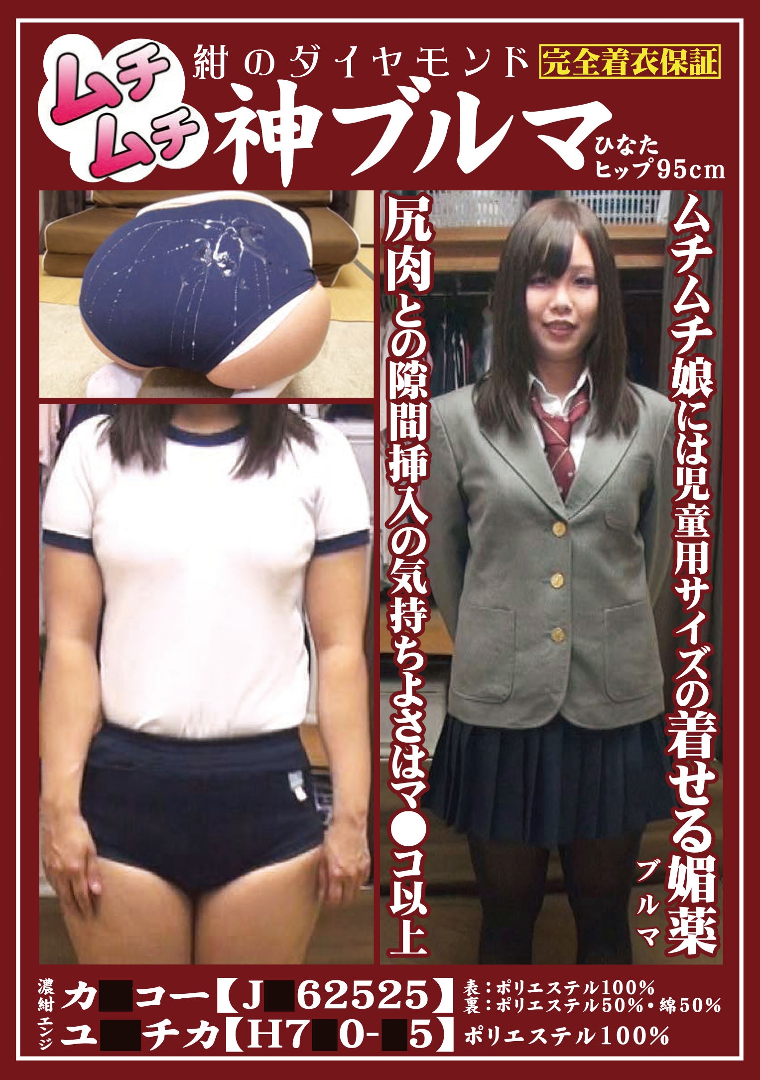 ムチムチ神ブルマ ひなた・ヒップ95cm 濃紺 カ●コー【J●62525】表:ポリエステル100% 裏:ポリエステル50%・綿50% エンジ ユ●チカ【H7●0-●5】ポリエステル100% Xシェア