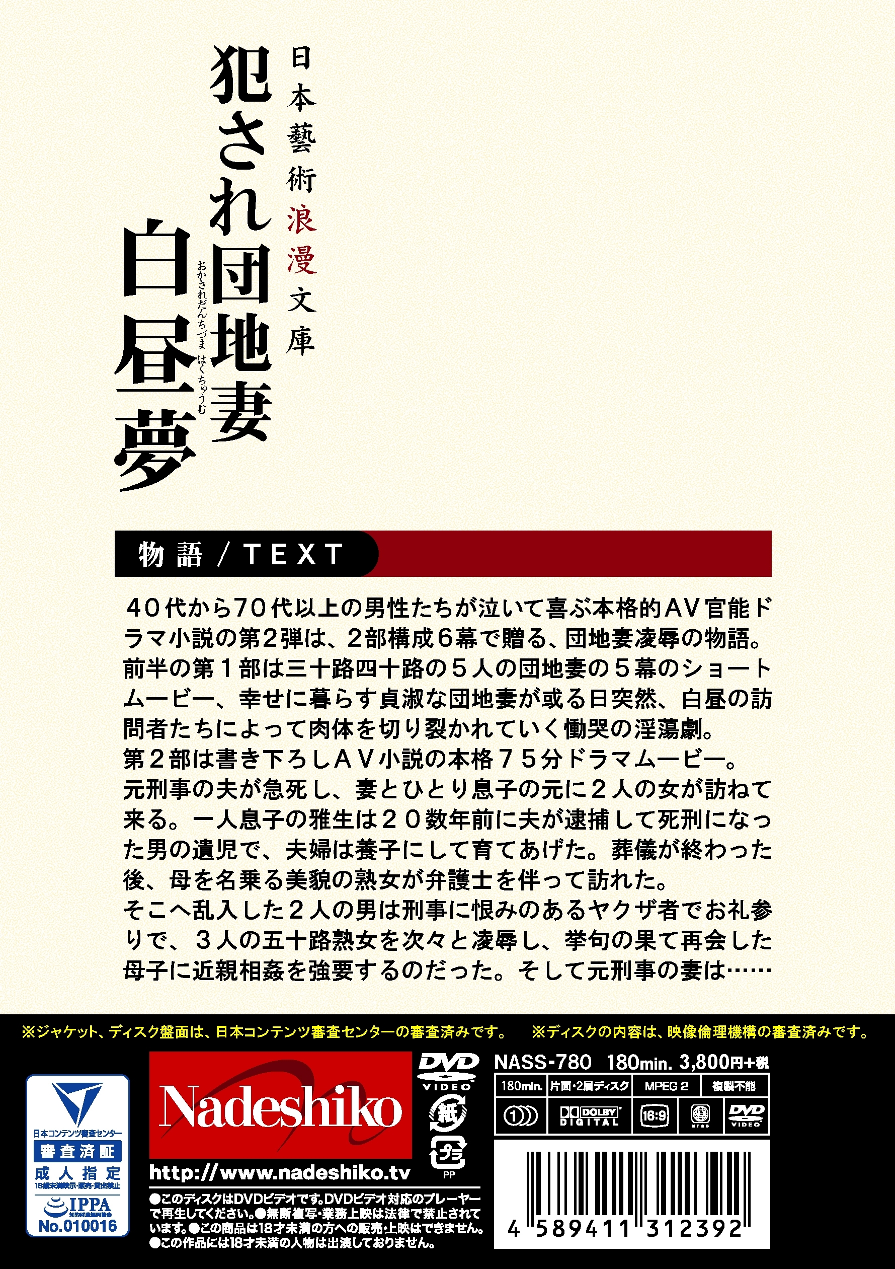 1970年代の昼メロドラマ良質なシナリオで贈る格調高いポルノ浪漫。三十路四十路五十路の8人の団地妻たちの幸せを踏み躙る邪悪な男たちの悪夢のような陵●悲劇に巻き込まれる6篇構成。二部構成の6幕劇で贈る衝撃の団地妻ストーリー。三十路四十路五十路8人の団地妻たちに突然訪れた悪夢のような屈●と凌●の物語。