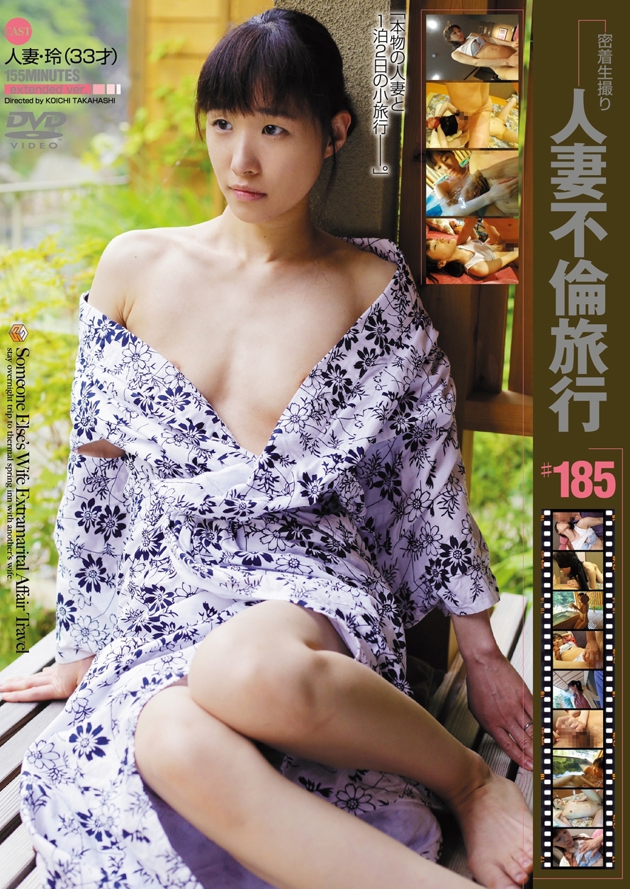 人妻玲(33)。人妻が初めて出会う男と一泊二日の小旅行。大ヒットシリーズ第185弾。子供を切望しながら女性としての自信を喪失した人妻に24時間密着。「夫婦なのに望む未来が違う…」結婚五年目。大学時代にバイト先で出会った同じ歳の男性と交際。お互い就職した後もダラダラと関係が続いたが30歳前に漸く結婚。子供好きが高じて幼稚園の教諭になったと云う人妻は自分の子供が欲しいと切望したが未だ妊娠の兆候はない。夫婦揃って検査したが問題はなかった。人妻ほど子供に対する愛着が無い夫は最初こそ協力的だったが徐々に溝が生まれ…夫婦の営みは三年前から途絶えた。一緒に暮らしていても互いに腫れ物に触れることを避けるような生活…夫婦の関係を改善したいと人妻は悲壮な決意を胸に旅へ出た。