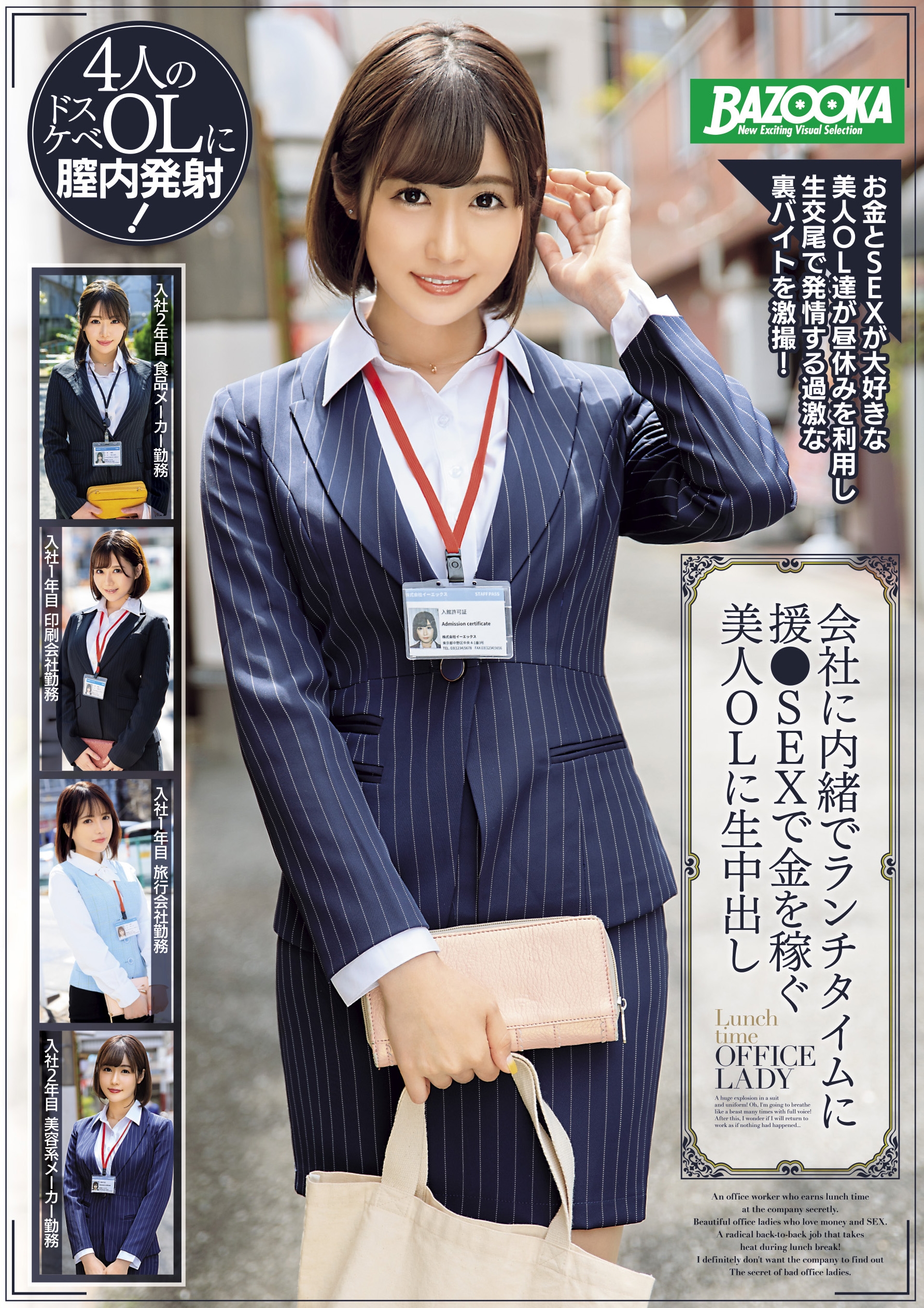 入社してまもなく会社の給料だけでは生活費でいっぱいいっぱいの美人OLさん達は、趣味や買い物や遊興費などを短時間で稼ぎたいという理由から、ランチタイム限定で援助してくれる相手をSNSで探す!お金とSEXが大好きな彼女達はスーツのまま男のチ○ポを淫口で貪り、オモチャ攻めで何度もイカされ、生挿入中発射も追加料金で受け入れては快感に酔いしれるのであった!貴方の勤める会社の新人OLさん達も密かにやっているかもしれませんよ!!