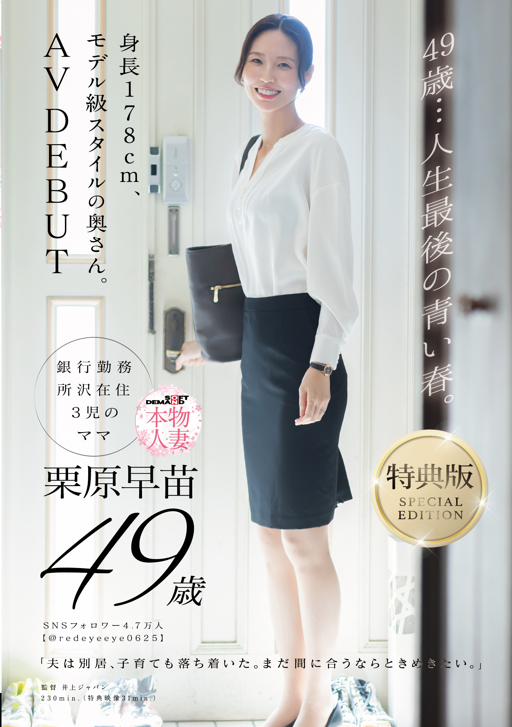 [新作] 【特典版】49歳…人生最後の青い春。身長178cm、モデル級スタイルの奥さん。AV DEBUT 栗原早苗