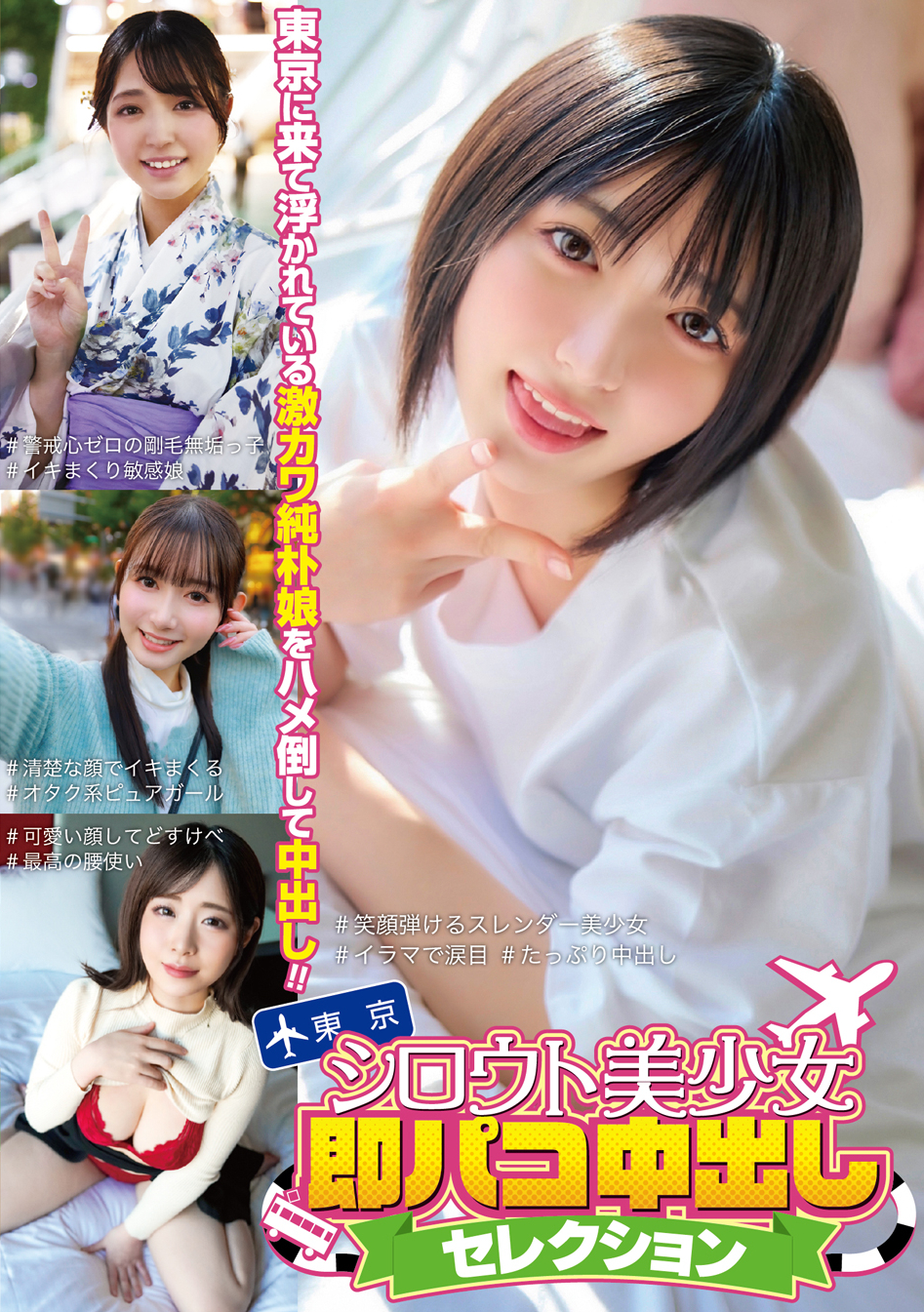 田舎から出てきた純朴美少女と即パコからのナマ中出し!初めての東京に浮かれモードの女の子たちはガードも甘々で腰つきもふわっふわ!スマートな都会人気取ればお股も勝手に開いちゃう!?可愛い顔してねっとりフェラしたかと思えば早くもお目目とろ?んの挿入OKって感じ?ビンカン乳首を弄ってやればビクンビクンのイキまくりでお股までヌレッヌレ!そんでもって「ナマチ○ポ欲しい?」なんて言われたら…ここで入れなきゃ男が廃るってもんよ!最高なのはこの可愛いお顔が俺のナマチ○ポの気持ちよさで崩れまくるコト!征圧感がたまらんね!どの娘もホント素直ですけべで敏感でなにより美少女なんだ!