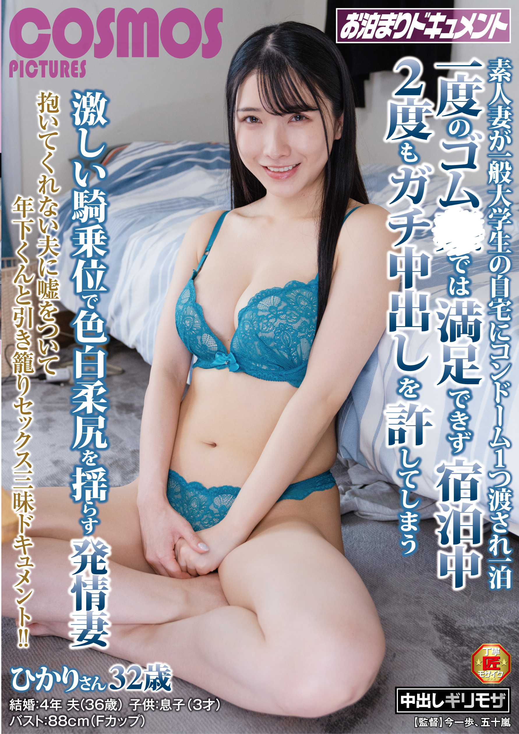 [新作] 素人妻が一般大学生の自宅にコンドーム1つ渡され一泊一度のゴム●では満足できず宿泊中2度もガチ中出しを許してしまう 激しい騎乗位で色白柔尻を揺らす発情妻 ひかりさん 32歳