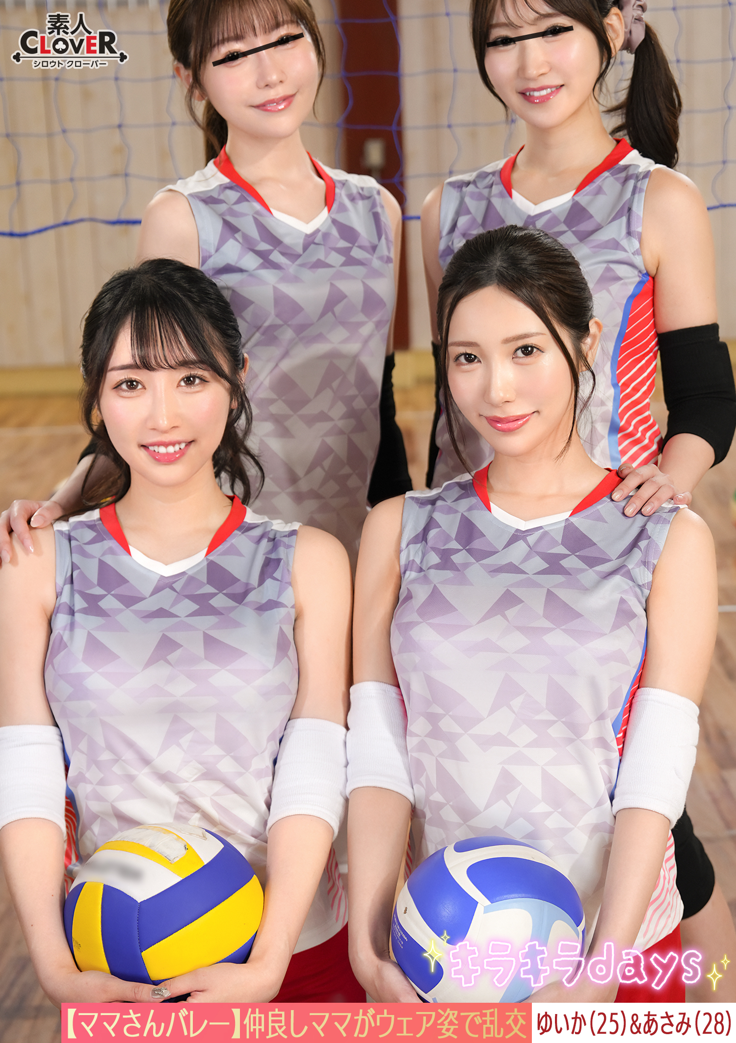 ママさんバレーボールチームの女性たちは旦那とレスの毎日で性欲を持て余していた。出会いがない中で練習で会うコーチの男性たちには目をつけており、ボディタッチや毎回の練習でムラムラは募るばかり…そんな中チームのメンバーから「ちょっと誘ってみない?」と提案が。皆誰かが言い出すのを待っていたと言わんばかりに誘いに乗り決行へ。コーチの男性たちがいつも通り練習を終え片づけや着替えをしているとそこに2・2に分かれた若妻たちが押し寄せ流されるままにSEXへ…コーチたちも練習中の若妻に興奮していたこともあり同意の上での大乱交に…※この作品は成人にコスプレをさせています。【キラキラdays ゆいか/B:90 W:60 H:90 あさみ/B:85 W:58 H:88 しおり/B:88 W:60 H:88 さちか/B:83 W:56 H:83】※この作品の出演者は全て19歳以上の成人です。(All performers in this work are adults over the age of 19.)