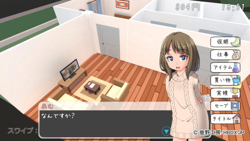3Dで作られたお部屋で義妹とほのぼの日常生活をしていくゲームだが、動作が軽くて遊びやすかった。