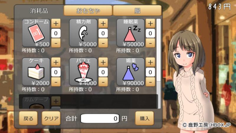 「ケーキ」や「パフェ」を購入してプレゼントすれば好感度を簡単にあげれたし、「おもちゃ」を買えばエッチ度をあげれたぞ。