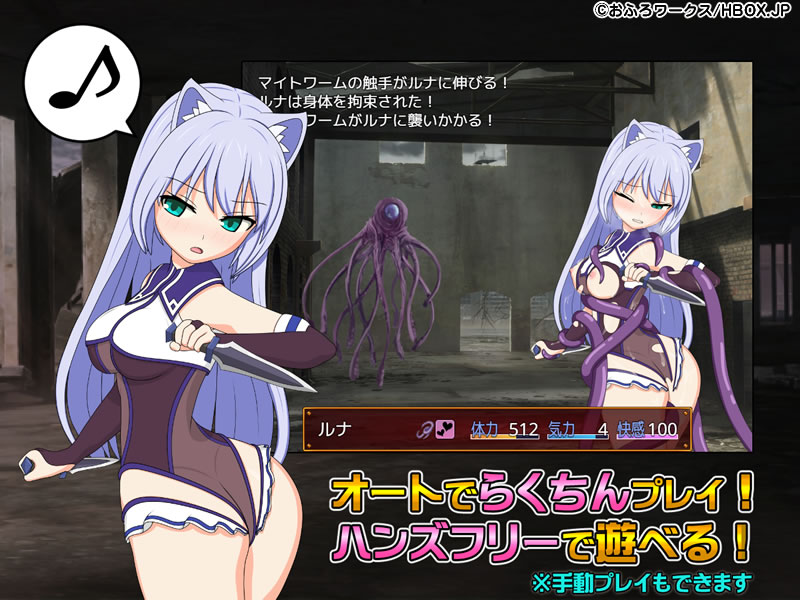 ローグライクというわけではないけど、毎回どんなヤラれかたをするのか楽しみされながら行き当たりばったりでヒドい目に遭うルナちゃん不憫カワイイ。全部の敵に個別戦闘Hがあるので、新しい敵に出会う度にワクワクします。