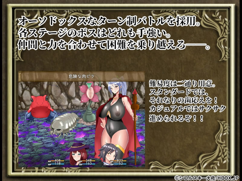ジャンル:ムチムチコキ穴3人組のチン道中!爆乳まみれの理不尽RPG