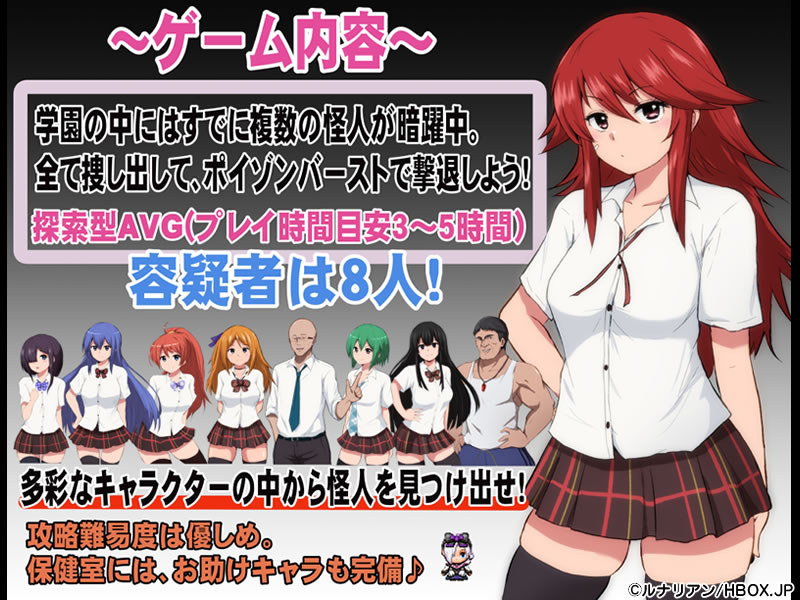 ほのぼのした学園ものではなく、学園に通う人たちに扮した怪人を探すRPG。