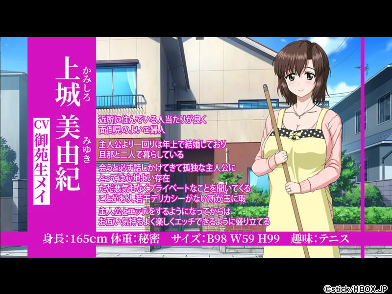 「人妻LovelyMoment」は、童貞フリーターの主人公が、近所に住んでいる優しい人妻と濃厚セックスしちゃう関係になるスマホエロゲだ!