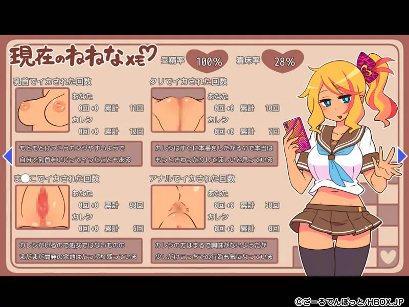 システム面では何度も周回がめんどくさかったアルバイトは2倍・5倍・10倍・20倍とまとめて働けるようになり、ヒロインのエロステが確認できるようになった!