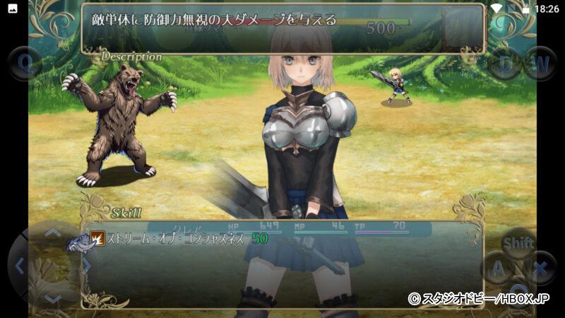 戦闘はサイドビューのコマンド式で、攻撃やスキルのほかにTPを消費する必殺技も使える!