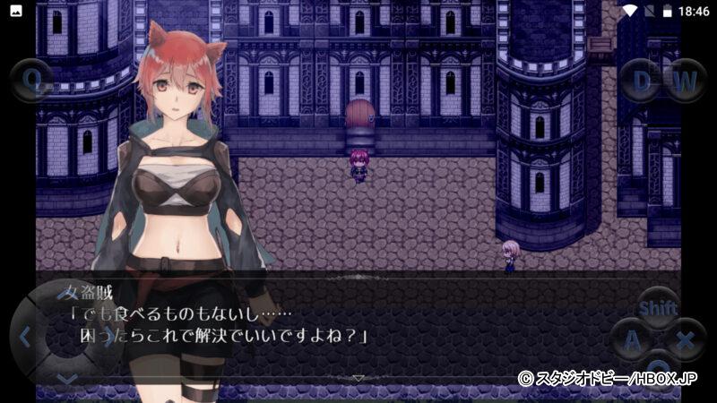 女盗賊ちゃんはお腹が空いていただけで戦闘する気はなく、攻撃されて服を破られてどうすればいいのか分からないといった様子……。