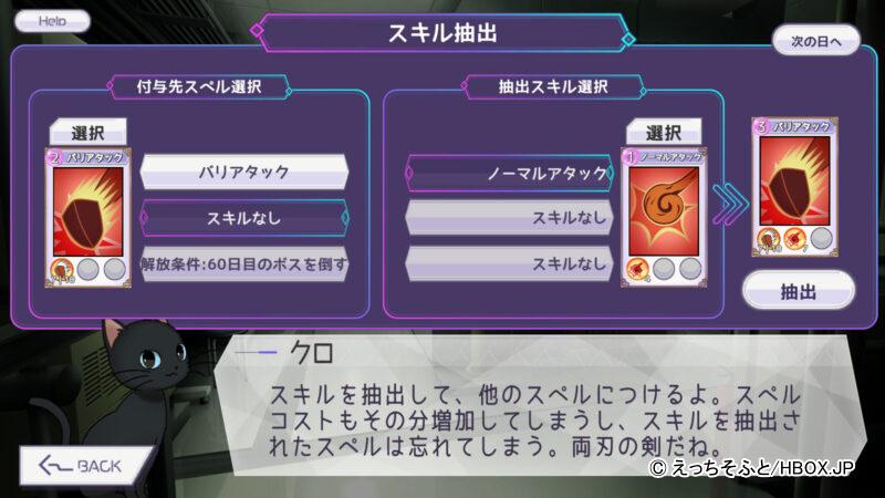 そのほかにも「強化」ではカードのステータスを上昇させることができ、「抽出」ではカードの効果を別のカードに付与することができた。