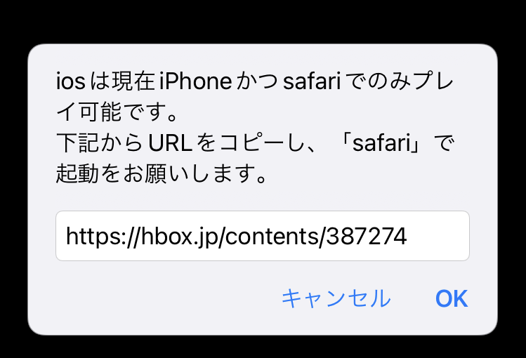 このメッセージは「iPhone」「safari」以外でプレイしようとしているときに表示されます。