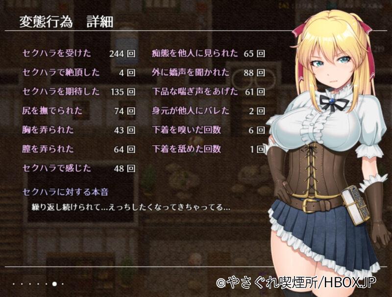 また、マジェタノが淫行を重ねると「膣内射精を許した回数」「自分から腰を振った回数」などの消せない記憶が付与される。清廉なヒロインが淫らに染まる過程がつぶさに記録されていく絶望感に浸ってほしい。