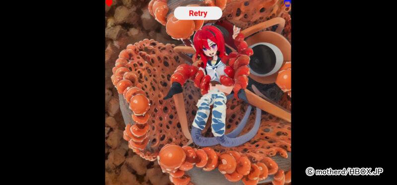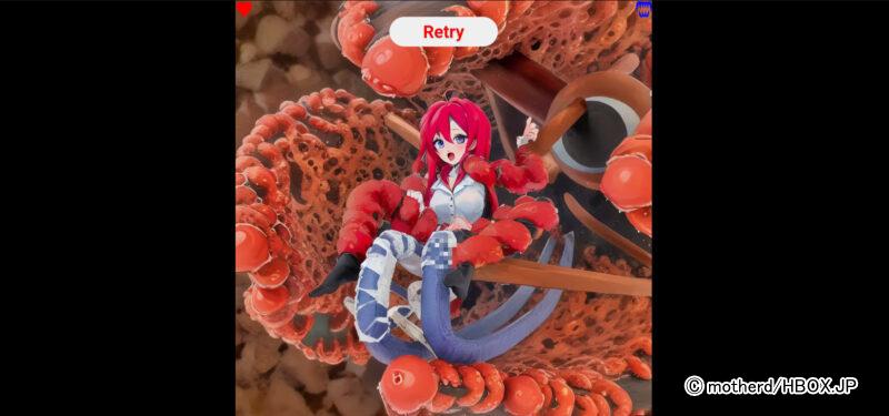 本来であれば「Retry」ボタンを押して最初からやり直せるのだが、この瞬間も女の子はぬるぬるアニメーションで触手モンスターに襲われていた!