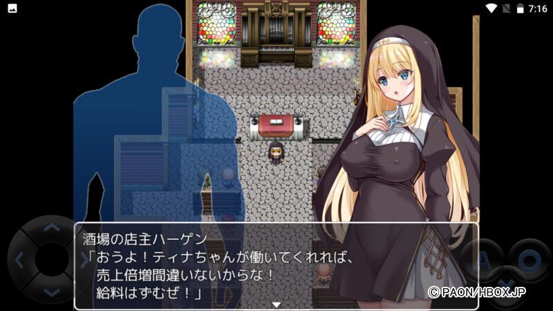 HBOXで遊べるiPhone&Android対応の「シスタークリスティーナの受難」は、失踪した神父の借金を返済するため、シスターちゃんが村人たちのお手伝いをしてお金を稼ぐスマホエロゲだ!