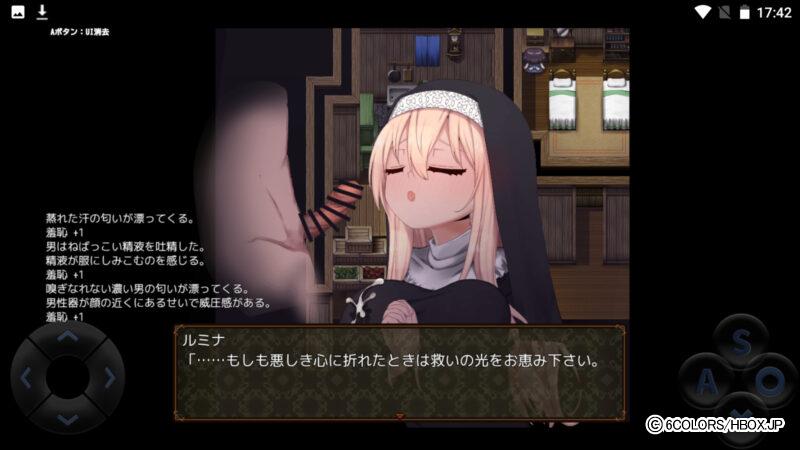 HBOXで遊べるAndroid&iPhone対応の「シスタールミナと催●教団」は、謎の教団に親友を連れ去られたシスター見習いちゃんが、淫魔術を使って街で情報を集めていくスマホエロゲだ!