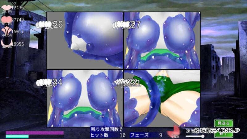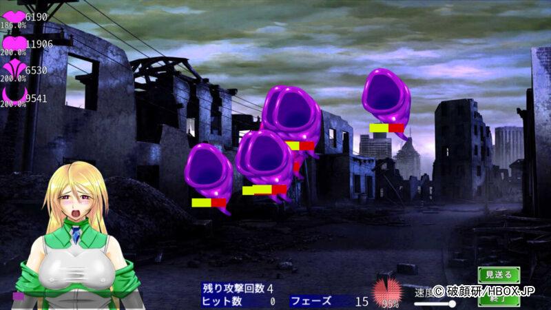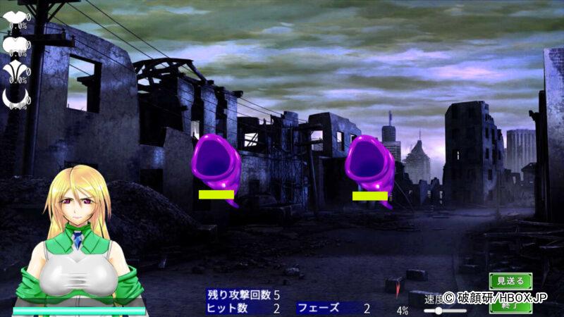 汚染ゲージが最大になるとウユハートちゃんが絶頂してしまい、攻撃を3回受けてしまう。