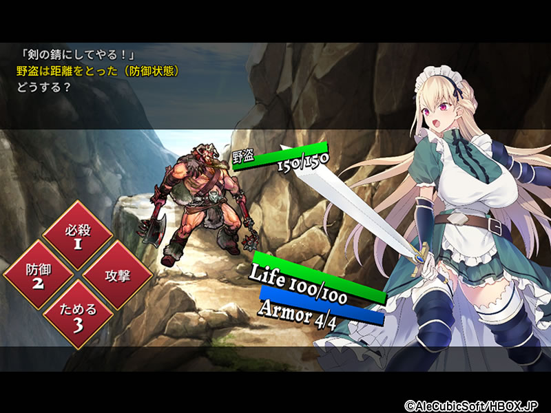 ステージごとに現れる敵と1対1で戦うことになるのだが、レベルアップや装備更新などの強化要素はなく、アリシアちゃんの戦い方次第で勝敗が決まる!