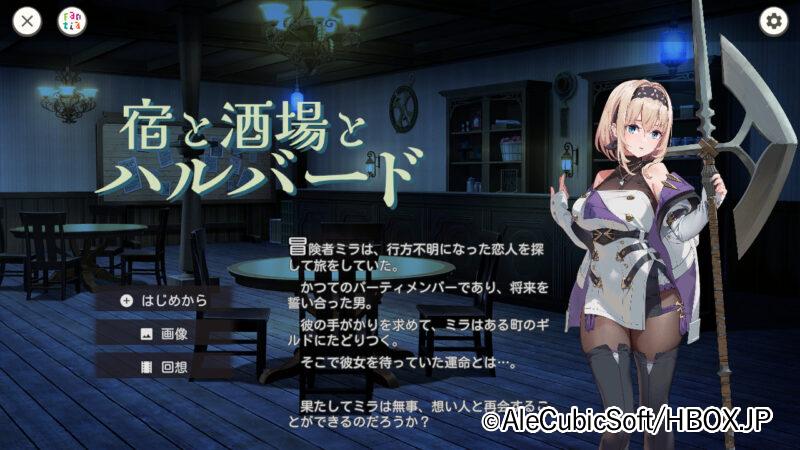 HBOXで遊べるAndroid対応の「宿と酒場とハルバード」は、行方不明になった恋人を探すヒロインちゃんが、ギルドの依頼をこなしていくスマホエロゲだ!
