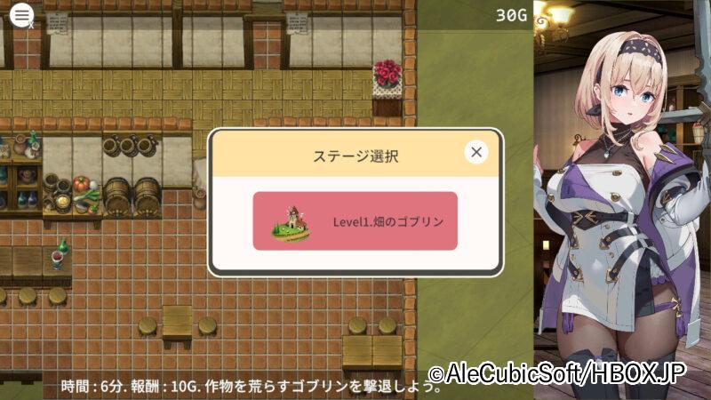 最初は「Level1.畑のゴブリン」からスタートして、クリアするごとに新しいステージが開放されていく。