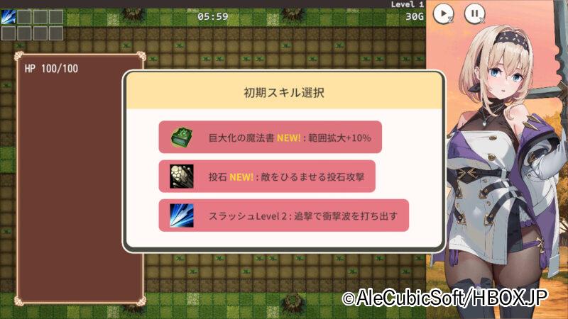 ミラちゃんはスタート時とレベルアップ時にスキルを選択することができる!