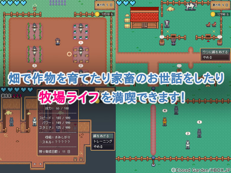 女の子と仲良くなったり時には馬レースをしたりしながら村を発展させてゆこう。