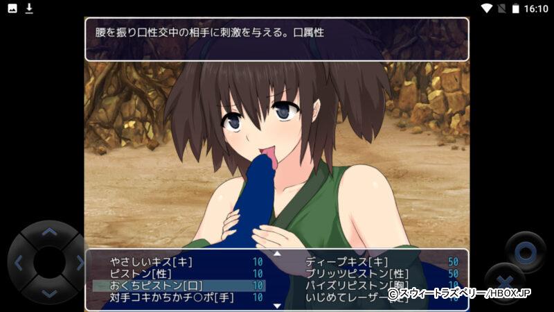 例えば序盤に出現する上記画像のアカナメ相手では、フェラチオ主体の魔族なので「口属性」の性技を使うべきだ。
