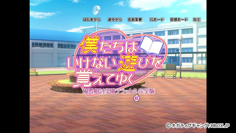 今回はそんな学園ラブコメADV、「僕たちはいけない遊びを覚えてゆく~風雲相討学園フラット2~超・完全版」を実際にプレイしながらレビューしていくぞ!