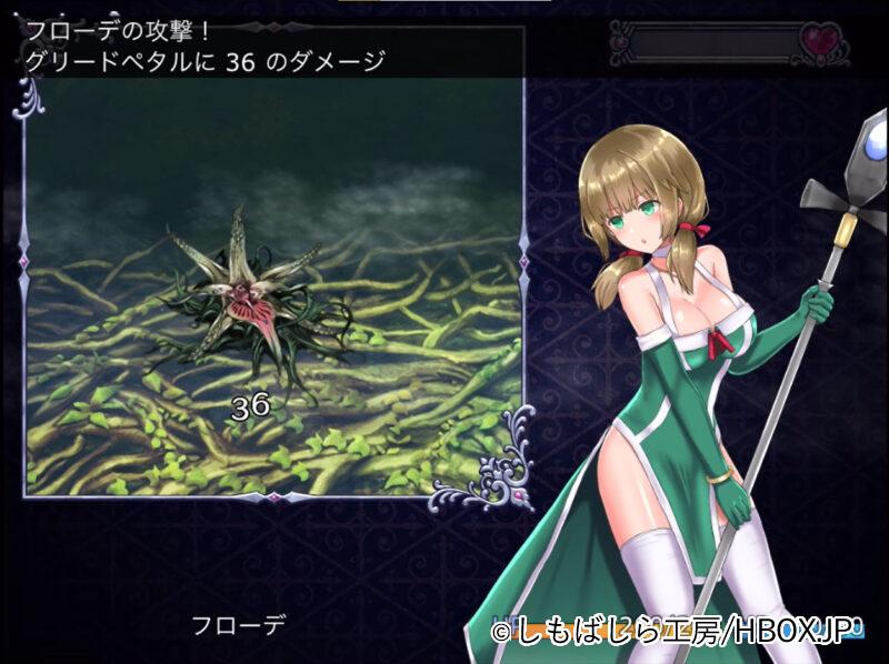 囚われの魔物娘ヒロイン・ラフレアが堕とされる調教エッチも本作のだいご味といえる。
