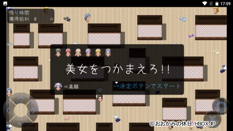 「美女を捕まえる仕事」は主人公から美女が逃げるのを利用して、部屋の角へと追い込めばたくさん捕まえられるぞ!