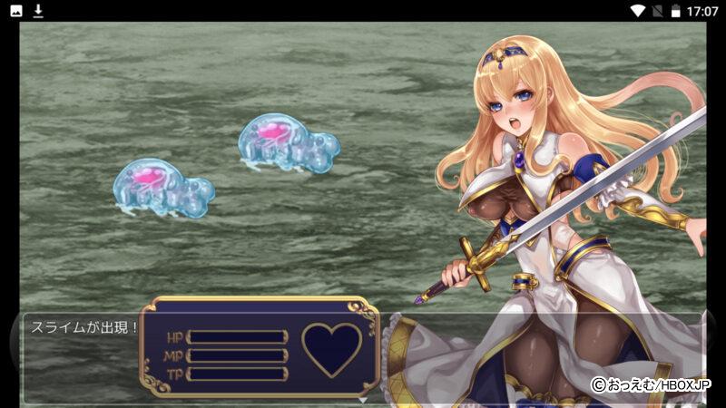 戦闘はセレリアちゃんのみで、HP・MP・TPのほかに、ハートマークの発情度ステータスが存在する。