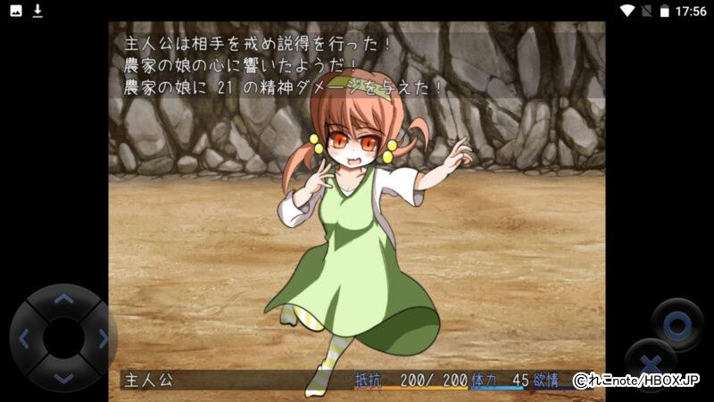 村娘たちとの戦闘はフロントビューとのコマンド式だが、勇者が使えるのは話術や精神統一のみ!