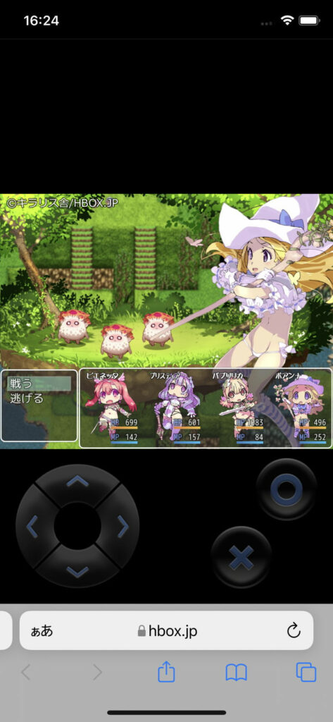 iPhone版でもAndroid版でも、画面上に十字のコントローラと〇×ボタンが表示されます。