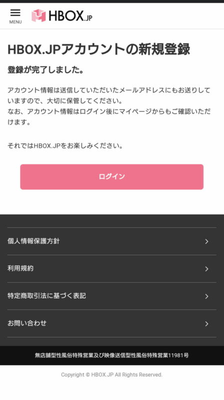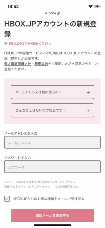 HBOX.JPはメールアドレスだけで登録でき、登録は無料なので、まずはラインナップだけでも見てみましょう!