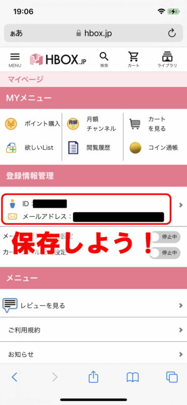 登録時のIDとメールアドレスは必ずスクリーンショットを撮るなどして保存してください。