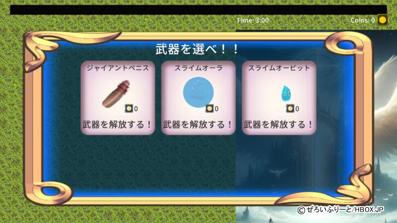まずは3つの武器からひとつ選ぶのだが、おすすめはスライムオーラだ!