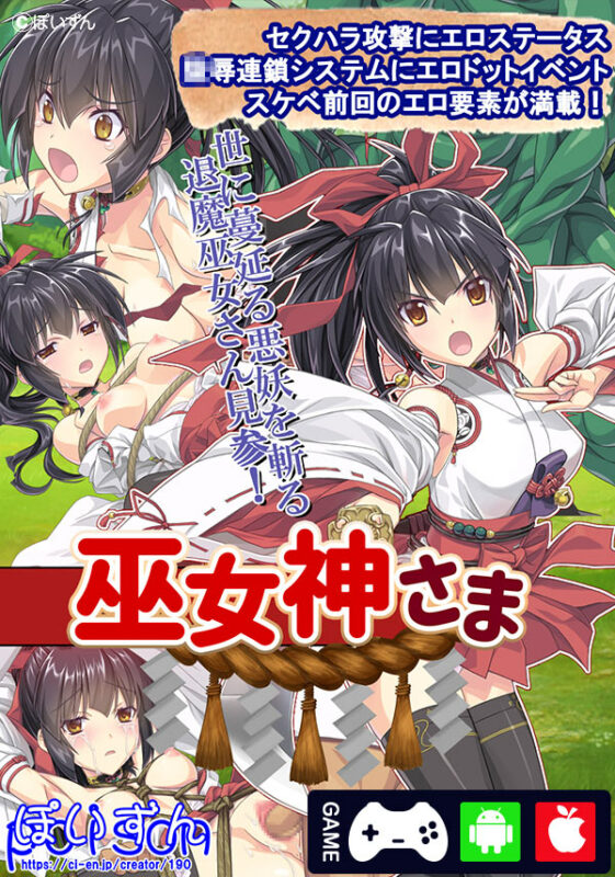 HBOXにて販売されている「巫女神さま」は、とある依頼で山奥の妖怪を退治しに来た巫女少女が、異変を治めるために懸命に頑張るゲームである!