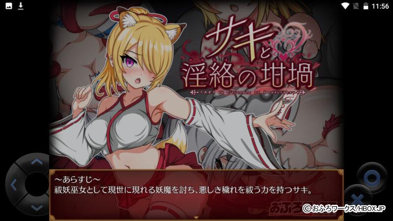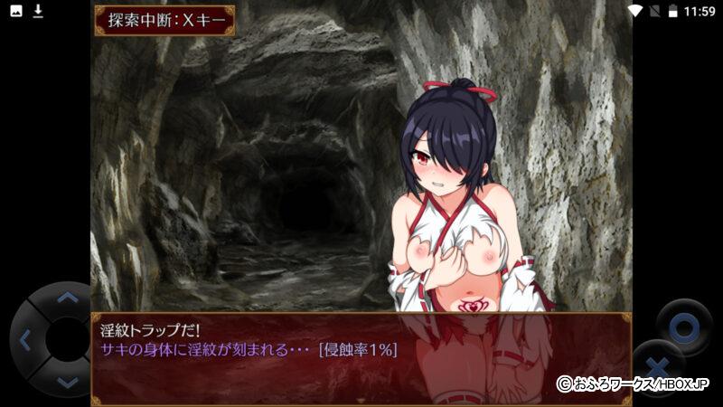 HBOXで遊べるAndroid&iPhone対応の「サキと淫絡の坩堝」は、悪霊から人々を守る祓妖巫女ちゃんが、怪異事件を解決するためダンジョンを探索していくスマホエロゲだ!
