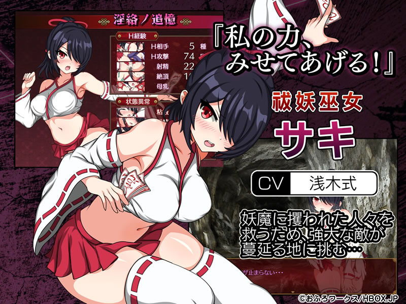 「サキと淫絡の坩堝」は、霊神を宿して悪霊と戦う祓妖巫女ちゃんが、人々を脅かす魔物を退治するためダンジョンへ挑むスマホエロゲだ!