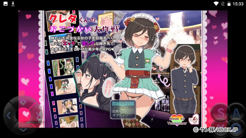 HBOXで遊べるAndroid&iPhone対応の「クレタくんのおこづかい大作戦!」は、連続誘拐事件に巻き込まれた男の子が、女の子としての気持ちいいを忘れらず女装にハマっちゃうスマホエロゲだ!