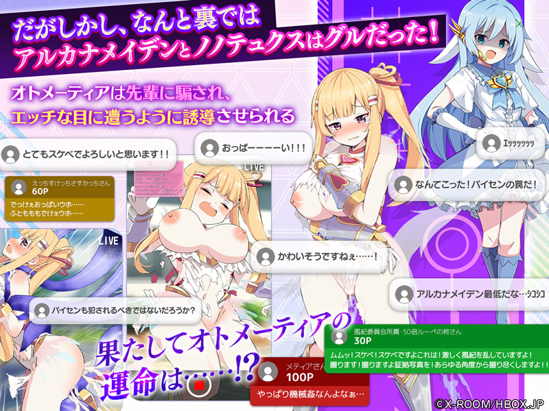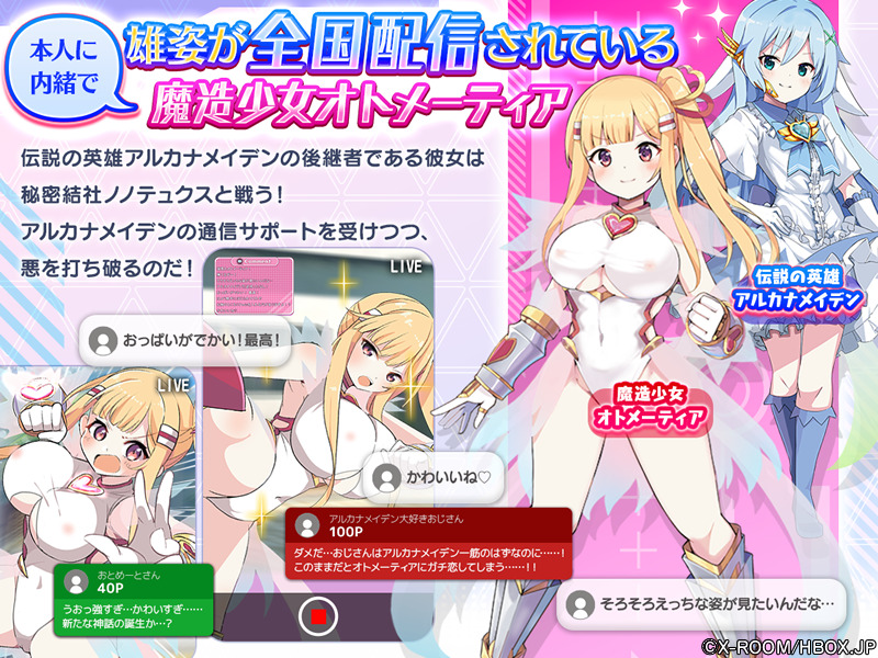 先輩魔法少女であり実況者でもあるアルカナメイデンちゃんと一緒に、プレイヤーはオトメーティアちゃんを操作して配信を盛り上げよう!