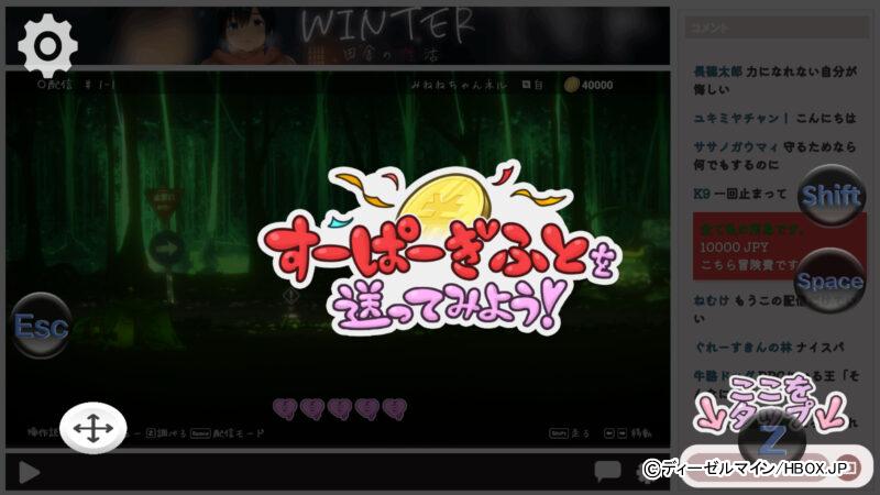 配信風画面ではスーパーチャットを送ることができ、みねねちゃんにお金を送ってプレゼントを届けられる。